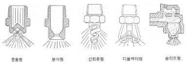 물이 헤드로 방사되기 직전에 심하게 교란시키면 물의 응집력은 떨어지면서 물방울이 미분화되게 되는데 이러한 미분화 방식은 헤드의 종류에 따라서 충돌형, 분사형, 선회류형, 디플렉터형 및 슬리트형으로 성능시험 기술기준에서는 분류하고 있습니다.