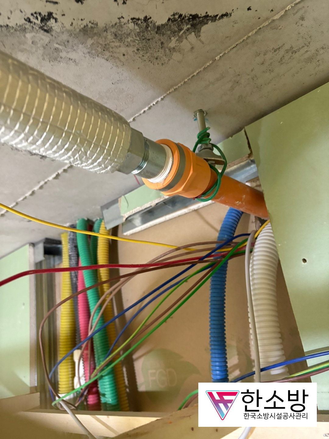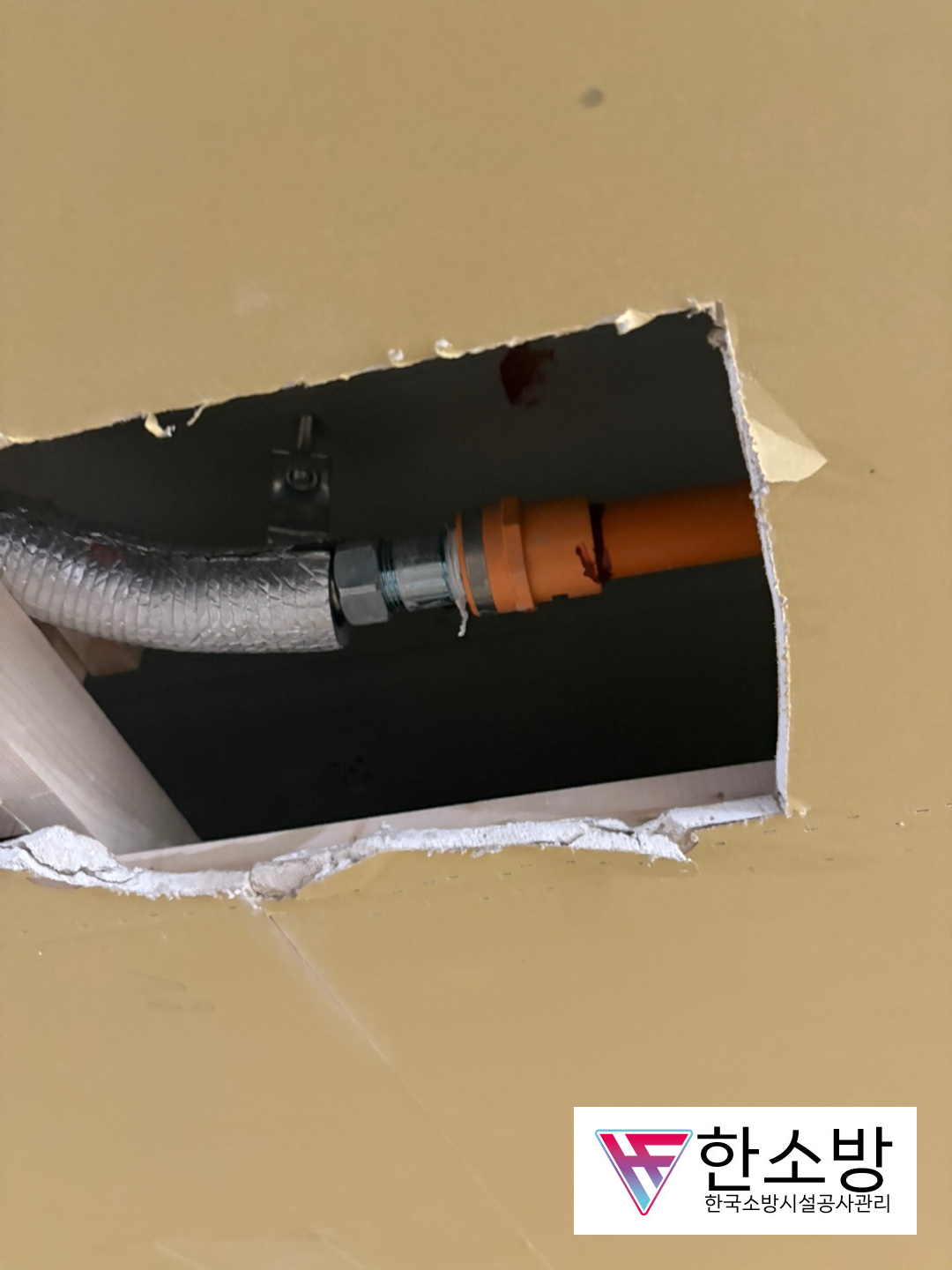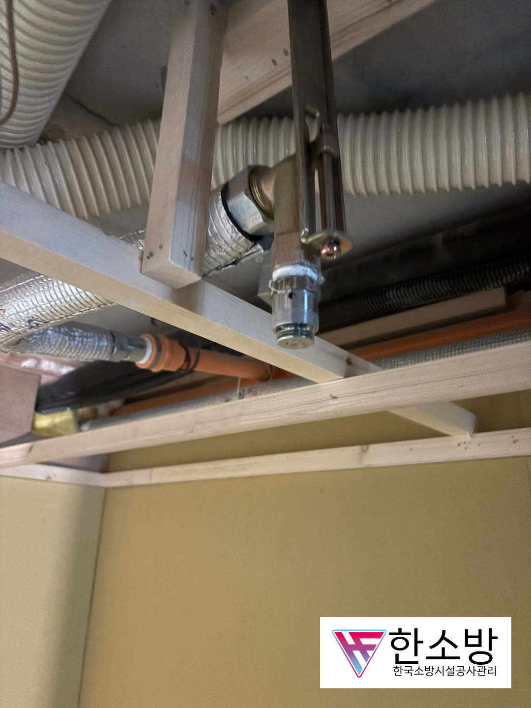 요즘 대부분 이렇게 작업을 하지만 이전에는 모두 CPVC로 진행을 했던 시절이 있었습니다. 그래서 옮기는 작업이 까다로웠지만 이렇게 신축배관으로 바꾸면 스프링클러 이설작업이 더 간단하게 됩니다.