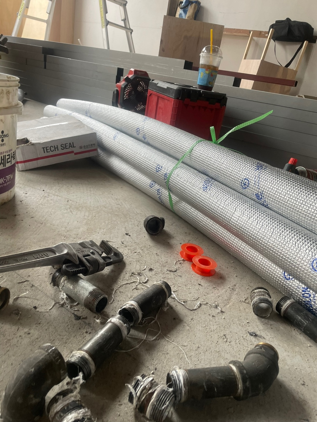 기존의 스프링클러 배관도 보양작업을 해달라고 하셔서 견적에 추가를 하여 스프링클러 배관 소방배관 모두를 보양작업 해줬습니다.