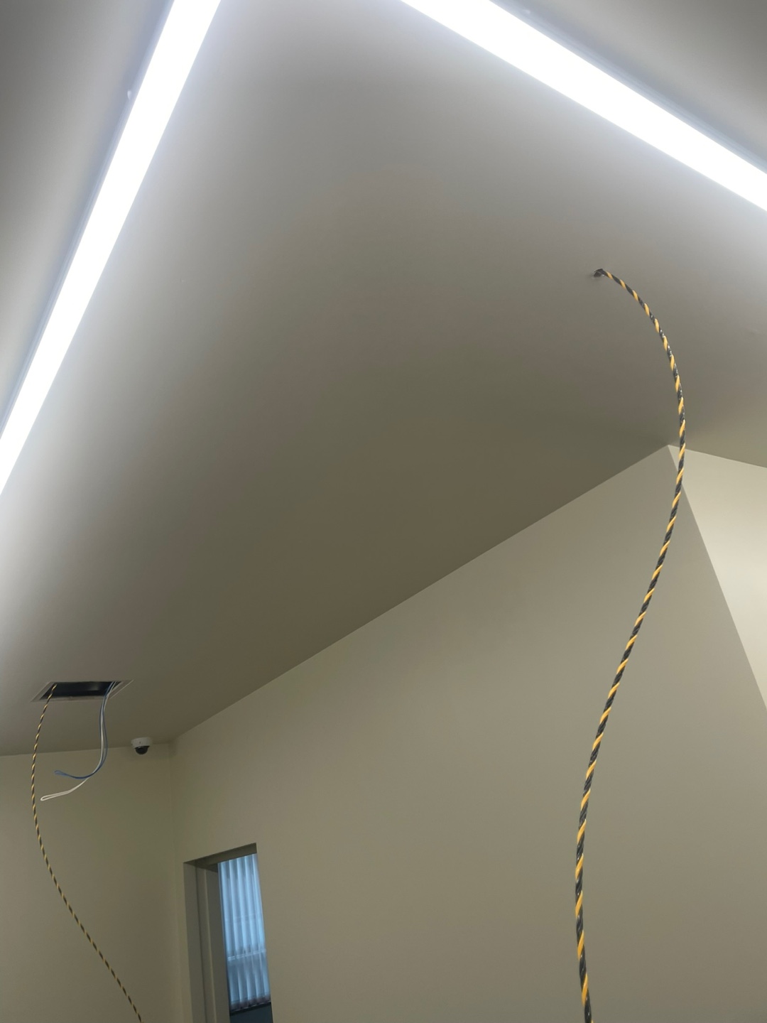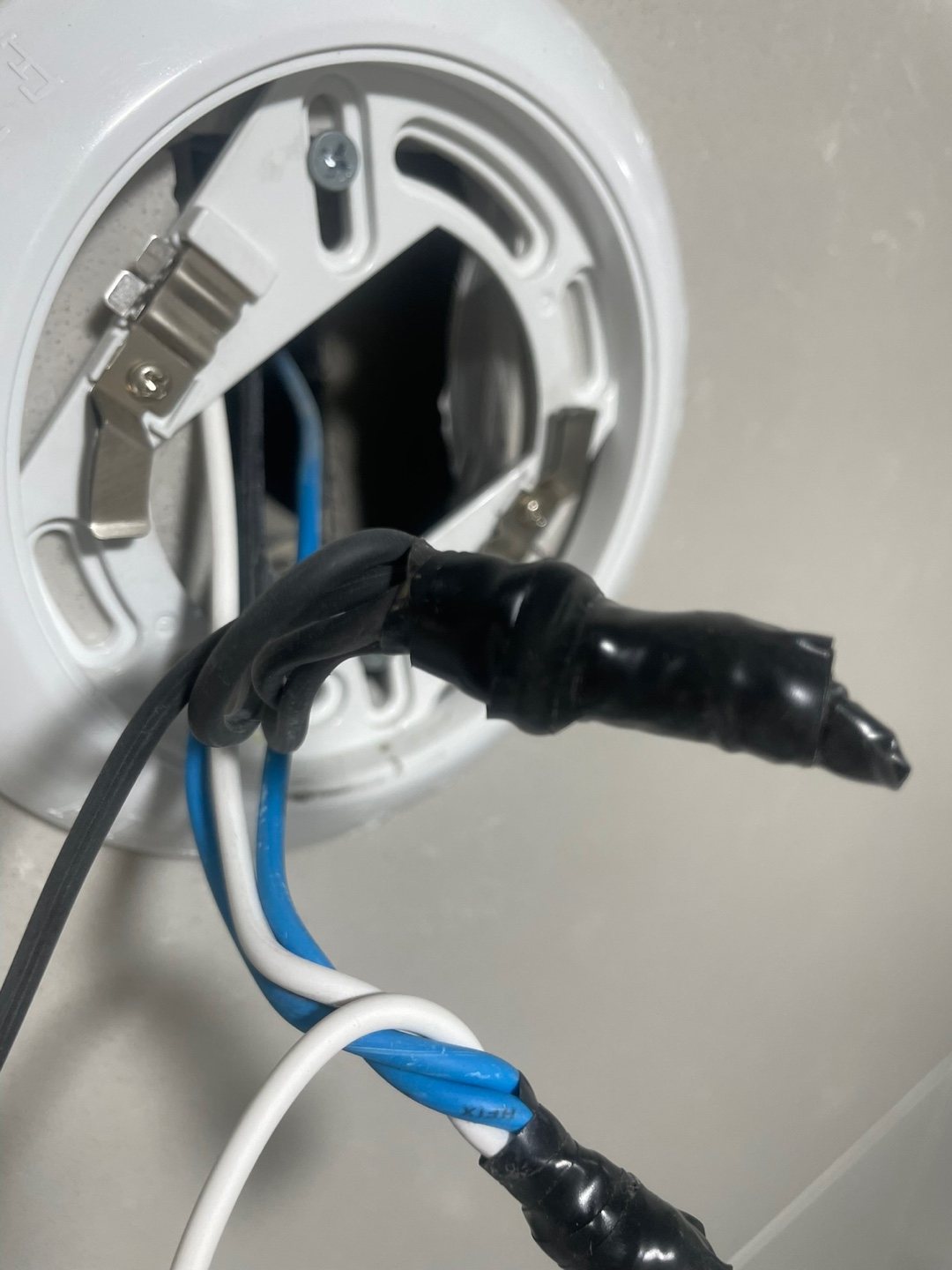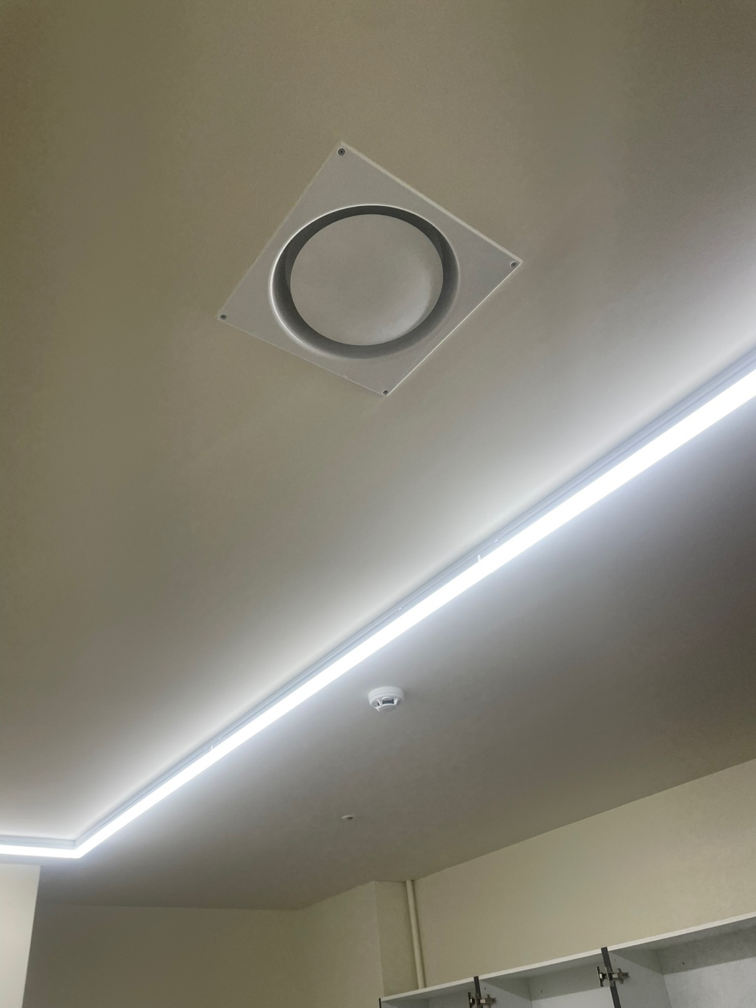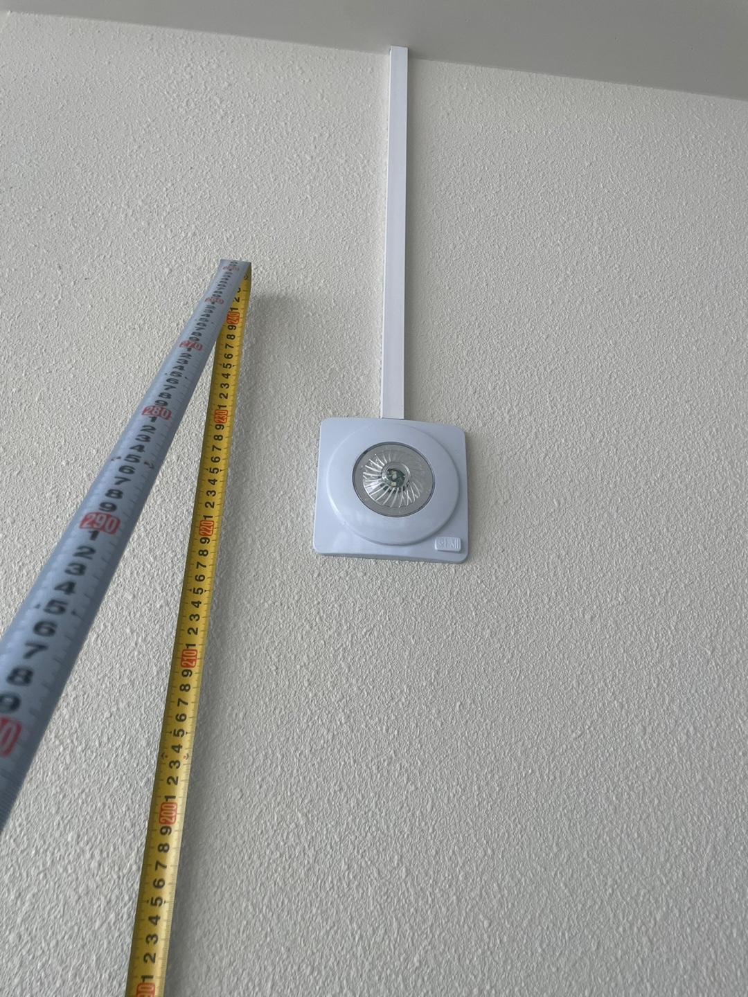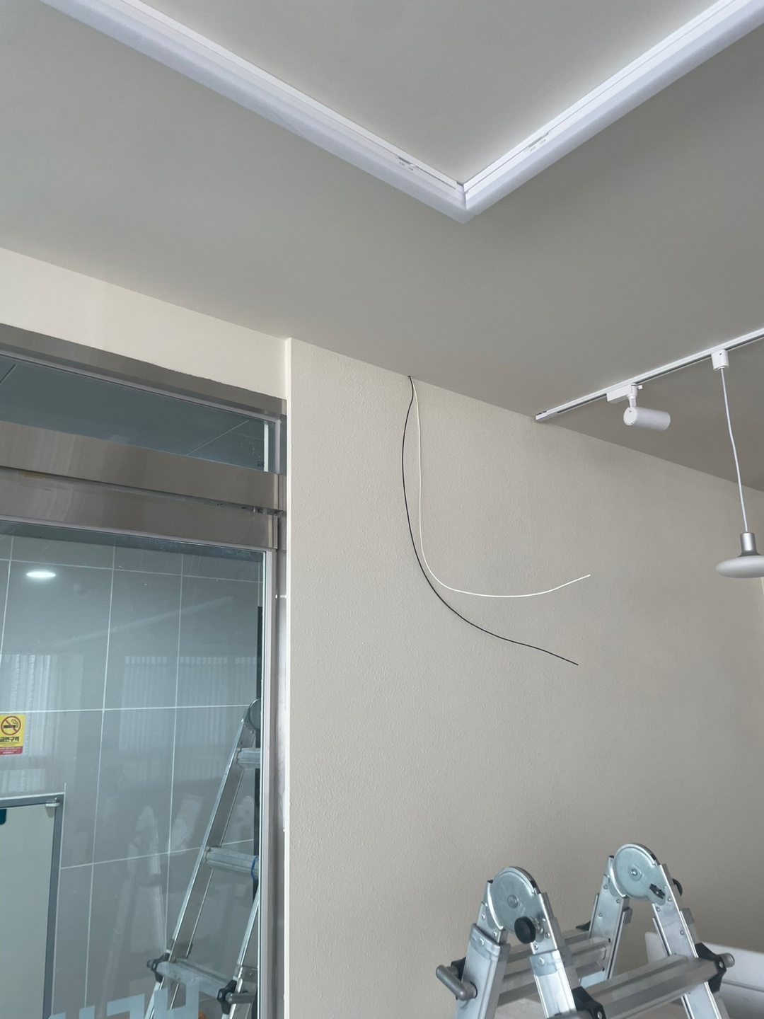 복도에 있는 시각경보기 선을 끌고 와서, 실내에 가져왔습니다. 그리고 시각경보기 설치기준에 맞춰서 설치를 해줬습니다.