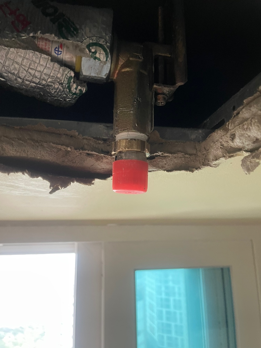 이번에 방문해서 공사를 했던 세대는 세탁실에 가스 인덕션에서 조금 하게 불이 나서 세탁실 내에 있는 스프링클러 헤드가 터진 현장입니다. 터진 스프링클러는 다시 사용하지 못하기 때문에, 스프링클러를 새것으로 교체를 해줘야 합니다.