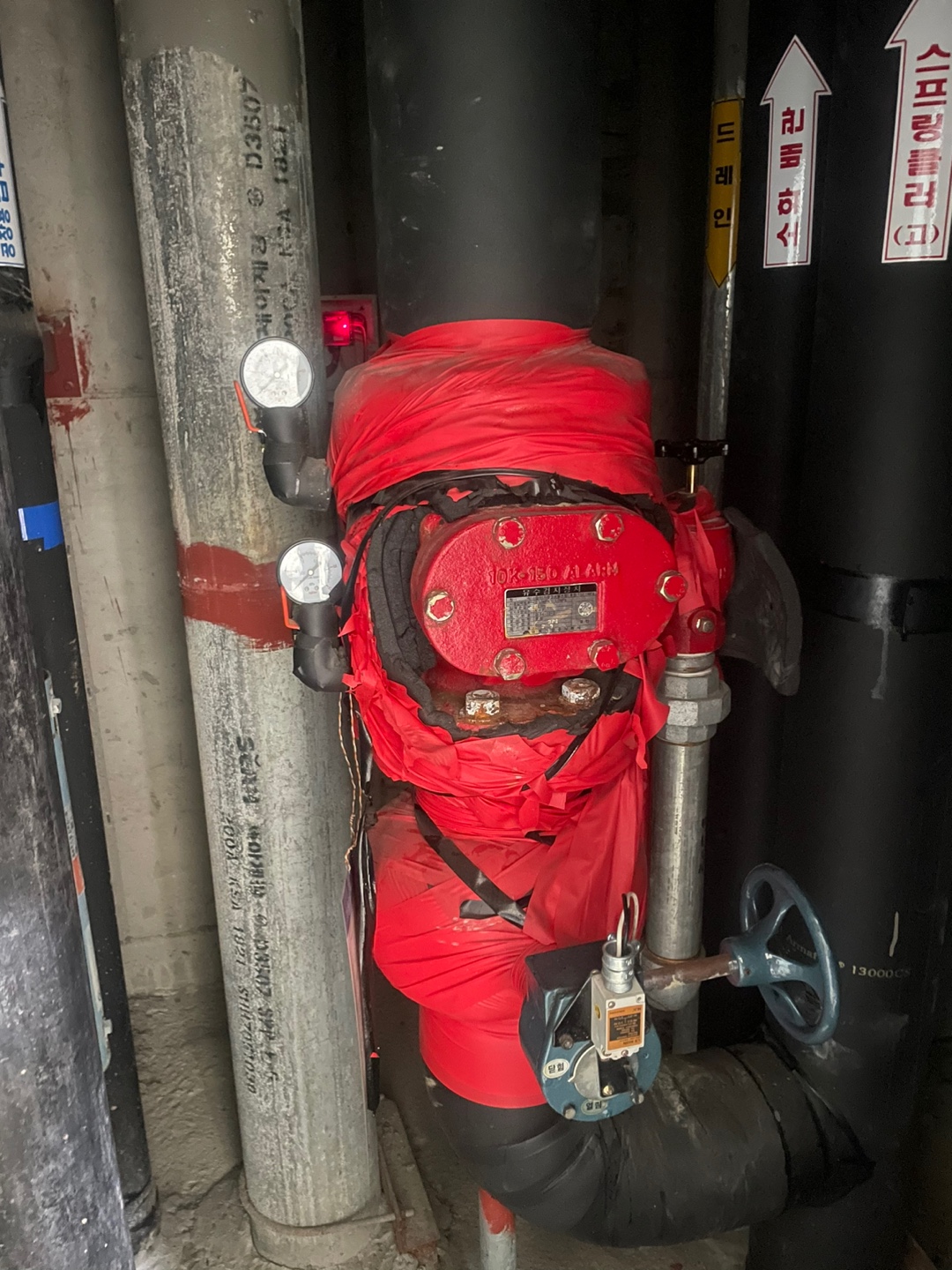 공사를 하던 도중에 스프링클러 배관을 건드려서 물이 삐져나온다던가,