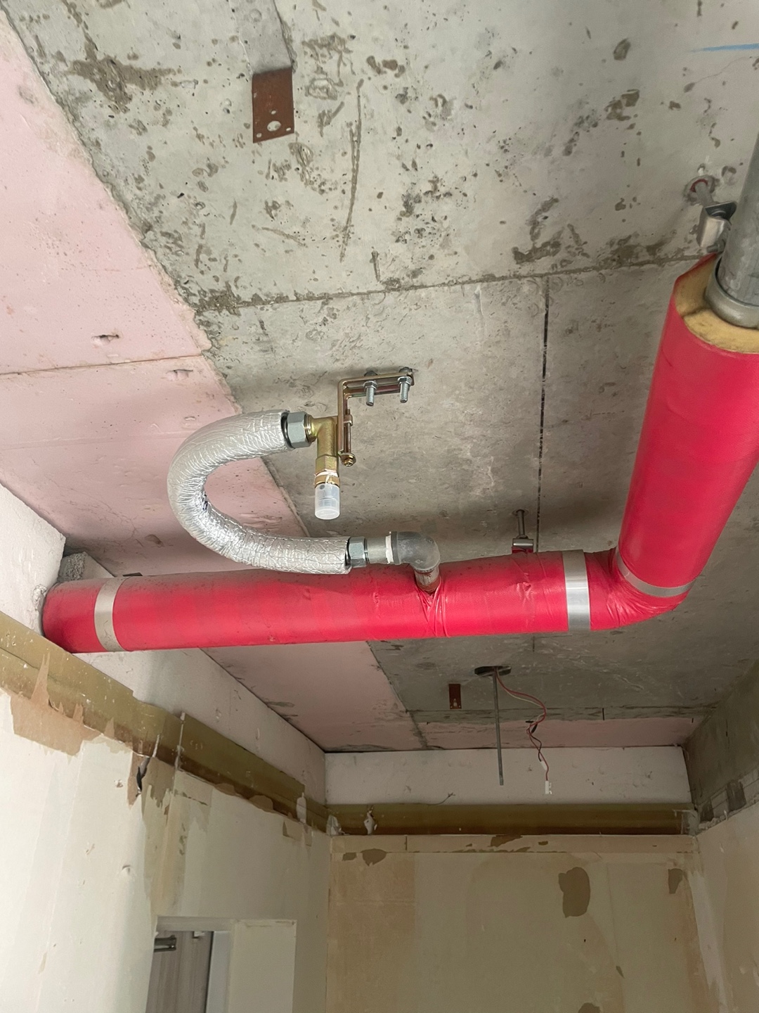 이러한 스프링클러 헤드로 교체를 해주고, 탄소강관을 신축배관으로 교체를 해줍니다.